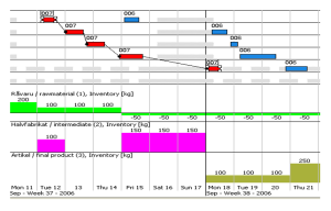 Information från affärssystemet blir till kontrollerad produktion. Återrapporterad produktionstakt förädlas och omvandlas till nya förutsättningar. Flaskhalsar minimeras och kritiska situationer kan tidigt upptäckas. Simulera en inkommande stororder, och se dess konsekvenser. Konstatera hur beläggningen ser ut över tid. Låt säljarna ta fram möjlig leveransdatum innan offert.